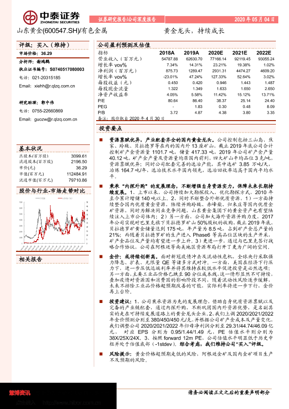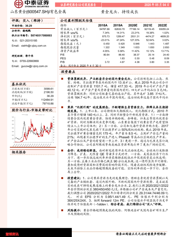 【中泰证券】【20200504】山东黄金-600547.SH-黄金龙头,持续成长-31页