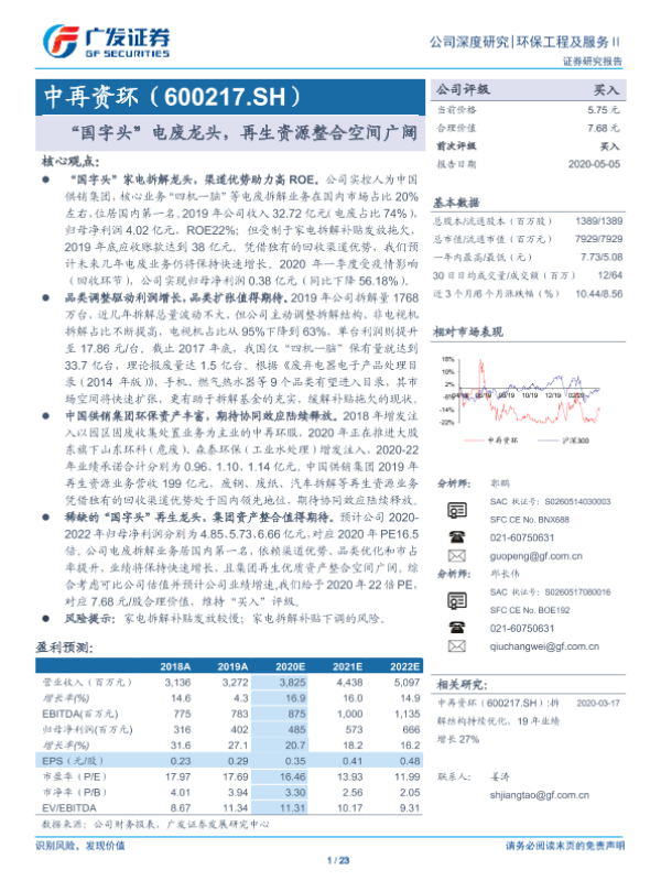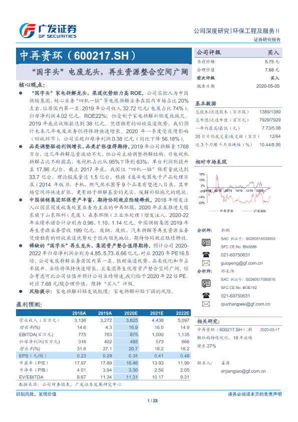 【广发证券】【20200505】“国字头”电废龙头,再生资源整合空间广阔-23页