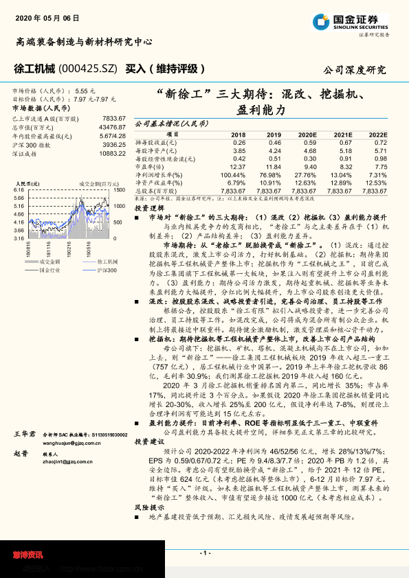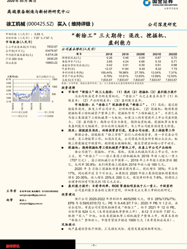 【国金证券】【20200506】“新徐工”三大期待:混改、挖掘机、盈利能力-24页