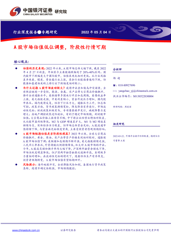 【银河证券】【20220504】A股市场估值低位调整,阶段性行情可期-22页