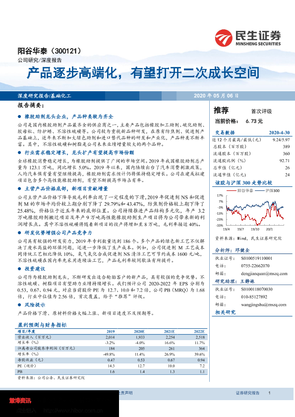 业绩预测 产品研发 市场分析 投资建议 橡胶助剂