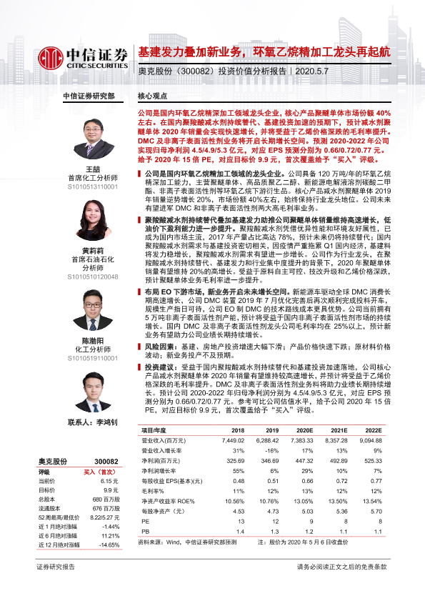【中信证券】【20200507】基建发力叠加新业务,环氧乙烷精加工龙头再起航-26页