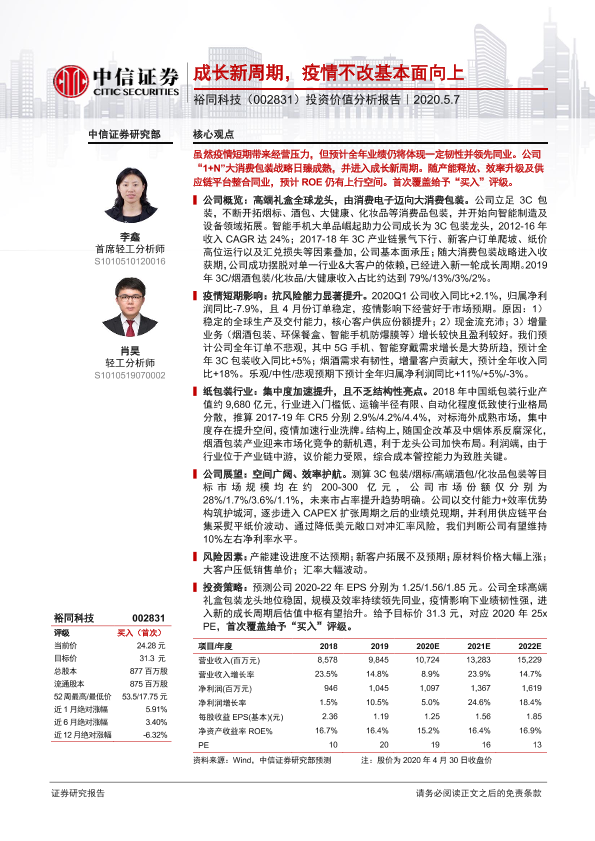【中信证券】【20200507】成长新周期,疫情不改基本面向上——裕同科技(002831.SZ)投资价值分析报告-36页
