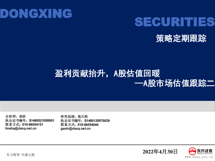 【东兴证券】【20220430】A股市场估值跟踪二:盈利贡献抬升,A股估值回暖-22页