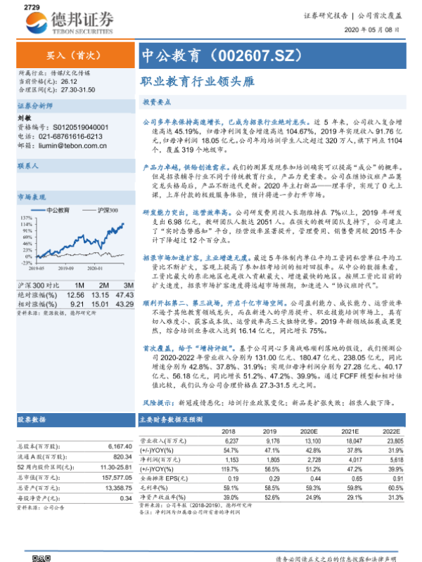【德邦证券】【20200508】中公教育(002607.SZ)-职业教育行业领头雁-24页