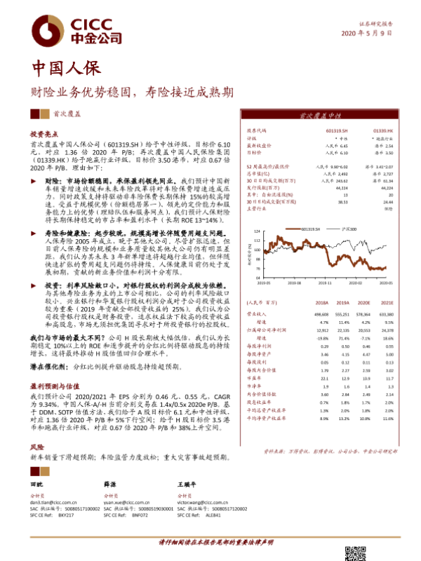 【中金公司】【20200509】中国人保财险业务优势稳固,寿险接近成熟期-33页