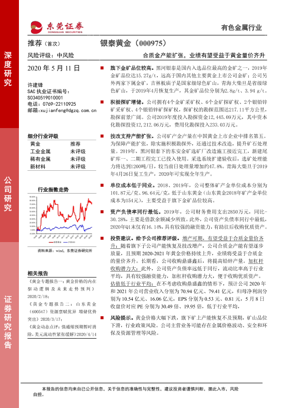 【东莞证券】【20200511】银泰黄金-000975.SZ-合质金产能扩张,业绩有望受益于黄金量价齐升-24页