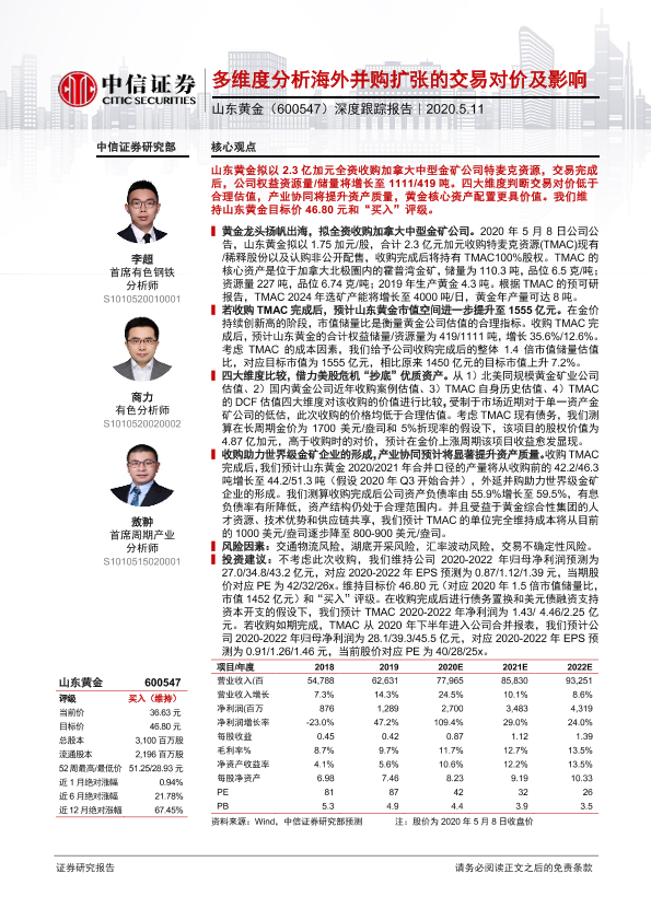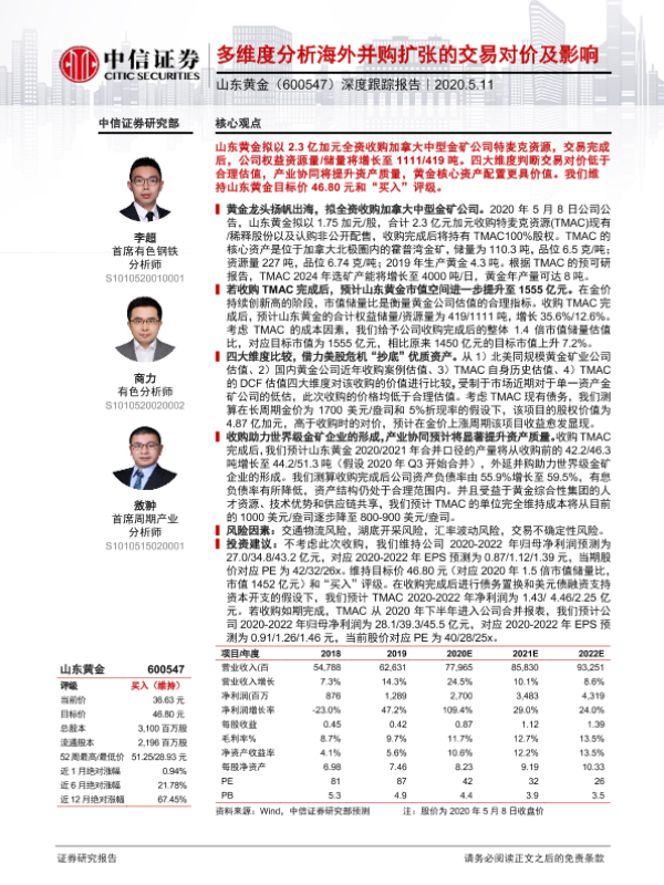 TMAC 山东黄金 海外并购 资产估值 黄金矿业