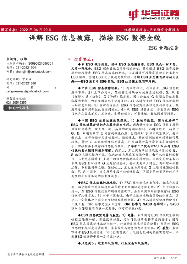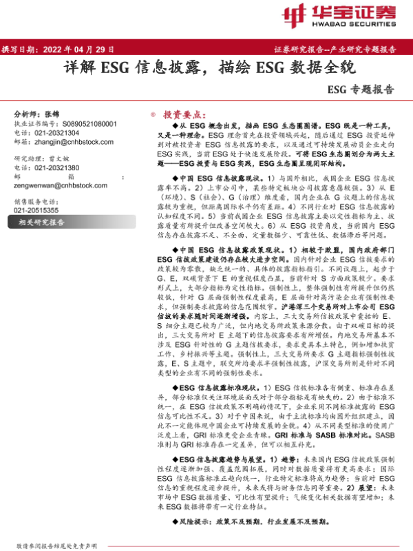 【华宝证券】【20220429】ESG专题报告:详解ESG信息披露,描绘ESG数据全貌-32页
