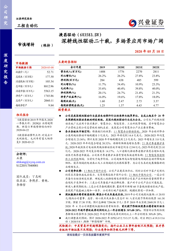 【兴业证券】【20200510】捷昌驱动(603583.SH)深耕线性驱动二十载,多场景应用市场广阔-40页