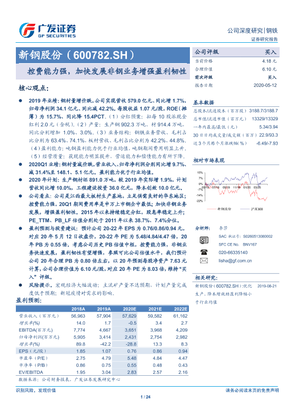 【广发证券】【20200512】新钢股份-控费能力强,加快发展非钢业务增强盈利韧性-24页
