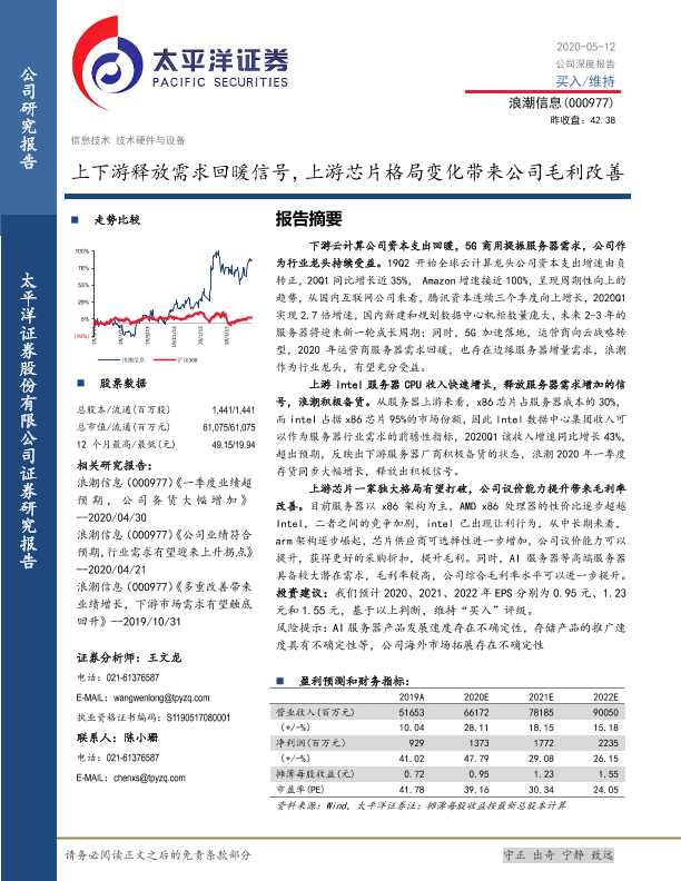 【太平洋证券】【20200512】上下游释放需求回暖信号,上游芯片格局变化带来公司毛利改善-20页