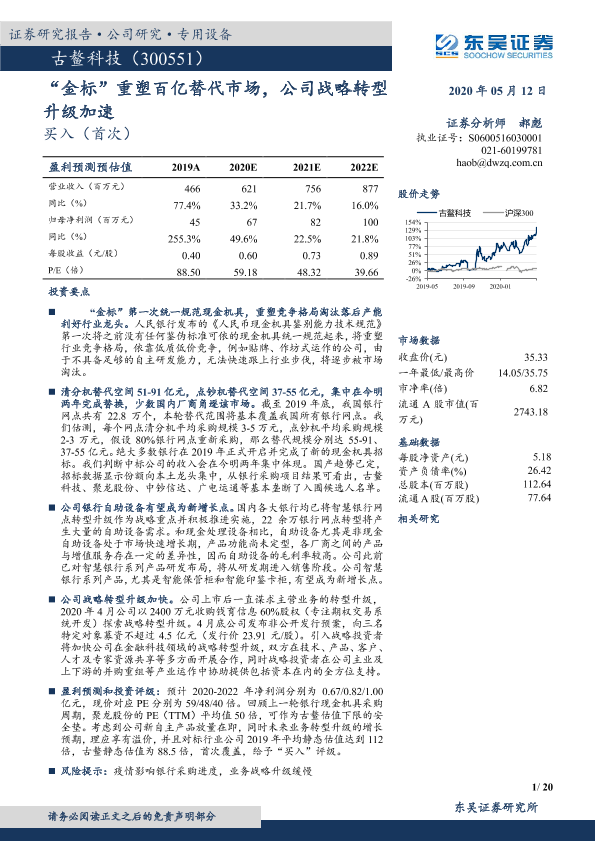 古鳌科技 战略转型 金标 金融机具 银行网点