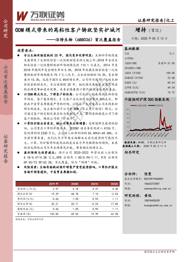 【万联证券】【20200512】20200512-万联证券-洁特生物-688026.SH-首次覆盖报告:ODM模式带来的高粘性客户铸就坚实护城河-23页