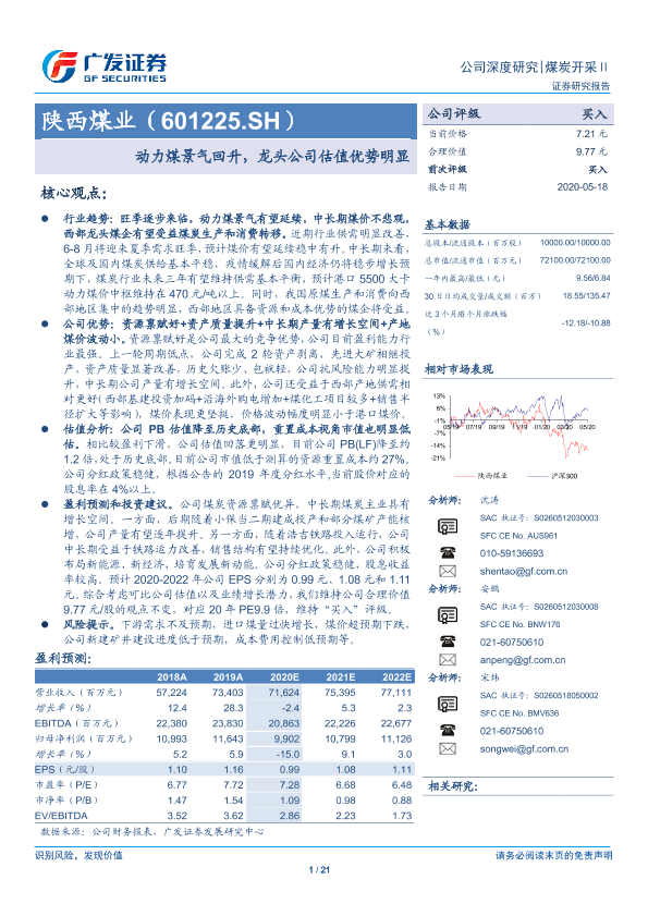 【广发证券】【20200518】20200518-广发证券-陕西煤业-601225.SH-动力煤景气回升,龙头公司估值优势明显-21页
