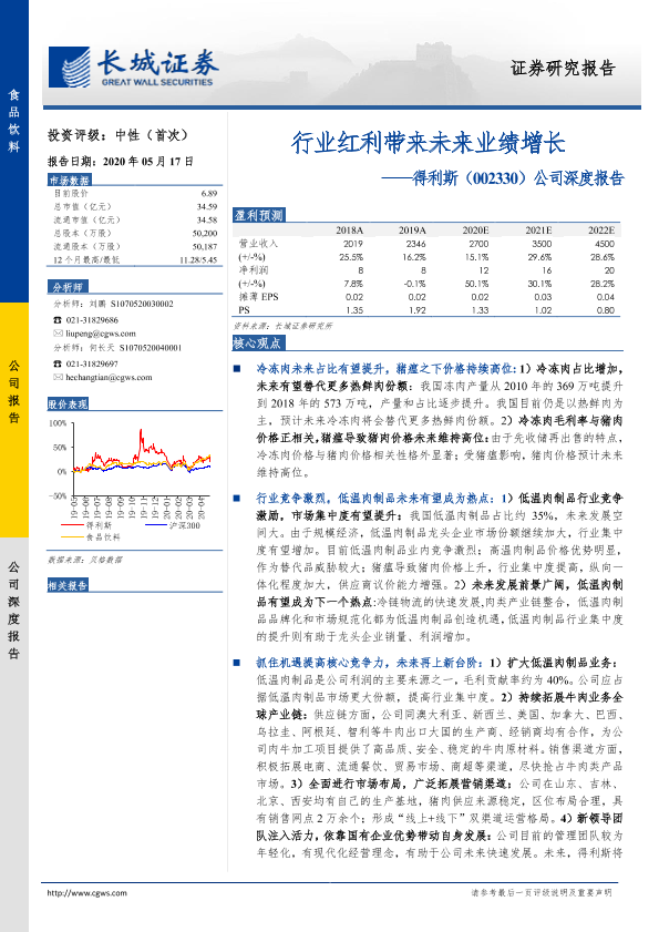 【长城证券】【20200517】20200517-长城证券-得利斯-002330.SZ-公司深度报告:行业红利带来未来业绩增长-30页