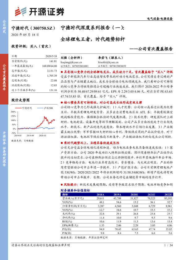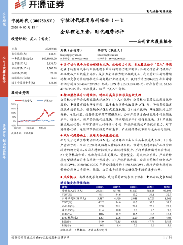 【开源证券】【20200518】宁德时代深度系列报告(一):全球锂电王者,时代趋势标杆-34页
