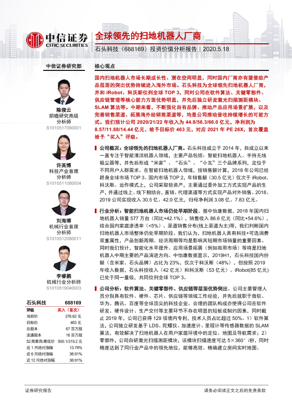 【中信证券】【20200518】20200518-中信证券-石头科技-688169.SH-投资价值分析报告:全球领先的扫地机器人厂商-23页