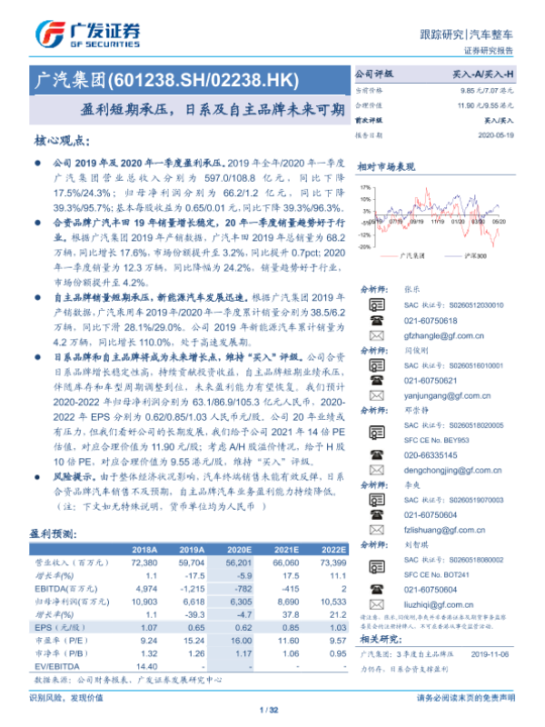 【广发证券】【20200519】广汽集团(601238.SH/02238.HK)盈利短期承压,日系及自主品牌未来可期-32页