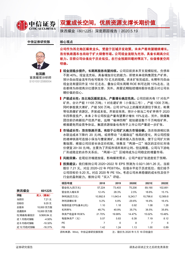 【中信证券】【20200519】20200519-中信证券-陕西煤业-601225.SH-深度跟踪报告:双重成长空间,优质资源支撑长期价值-25页