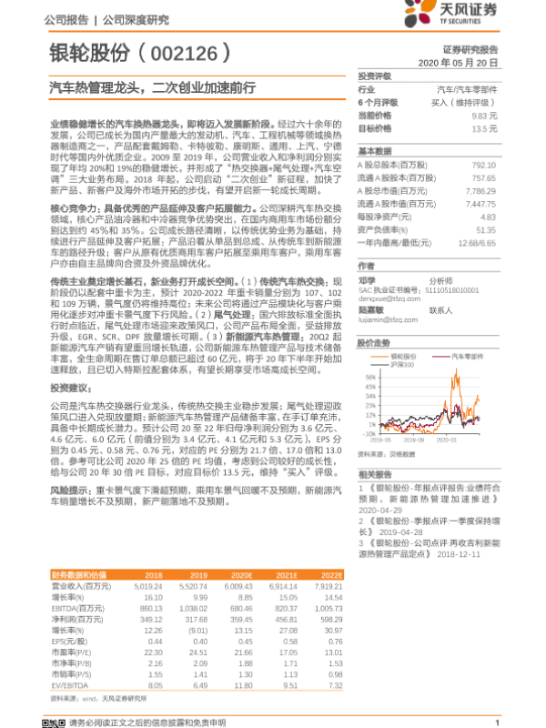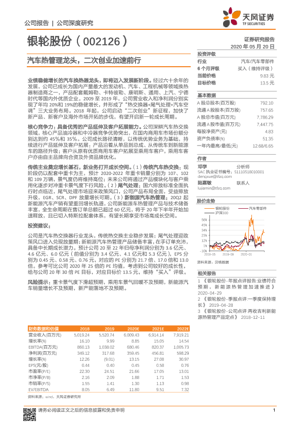 【天风证券】【20200520】银轮股份-002126.SZ-汽车热管理龙头,二次创业加速前行-31页