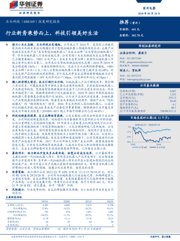 【华创证券】【20200520】20200520-华创证券-石头科技-688169.SH-深度研究报告:行业新秀乘势而上,科技引领美好生活-28页