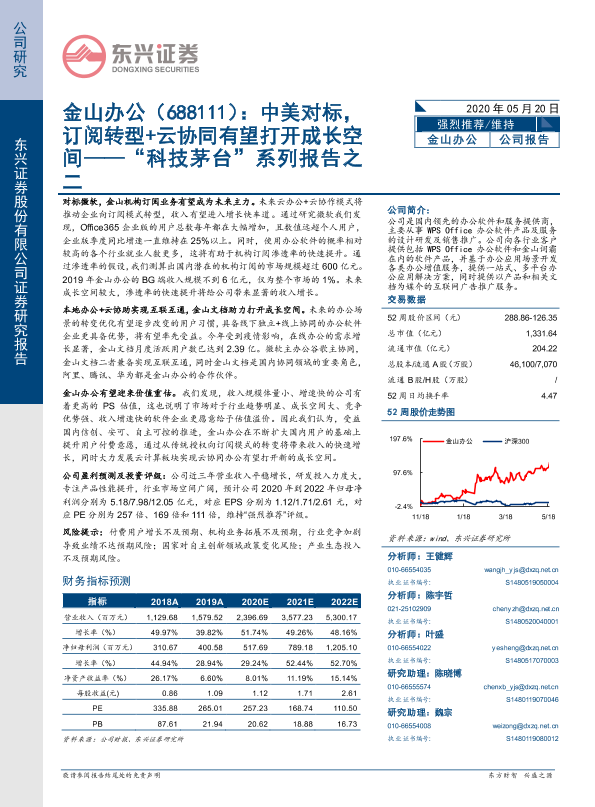 【东兴证券】【20200520】金山办公:中美对标,订阅转型+云协同有望打开成长空间——“科技茅台”系列报告之二-14页