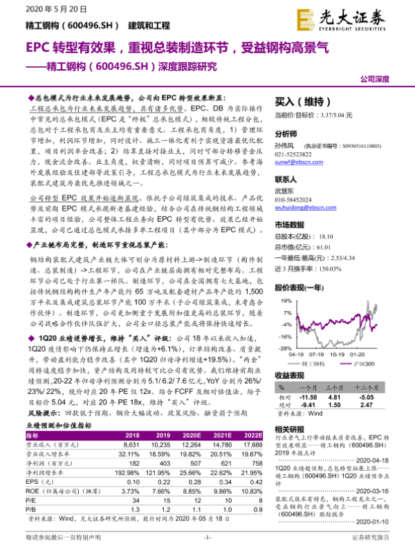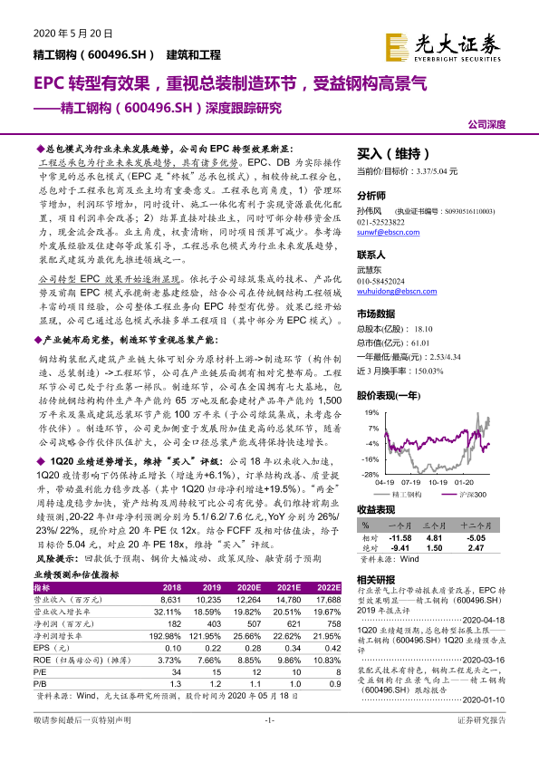 【光大证券】【20200520】精工钢构(600496.SH)深度跟踪研究:EPC转型有效果,重视总装制造环节,受益钢构高景气-24页