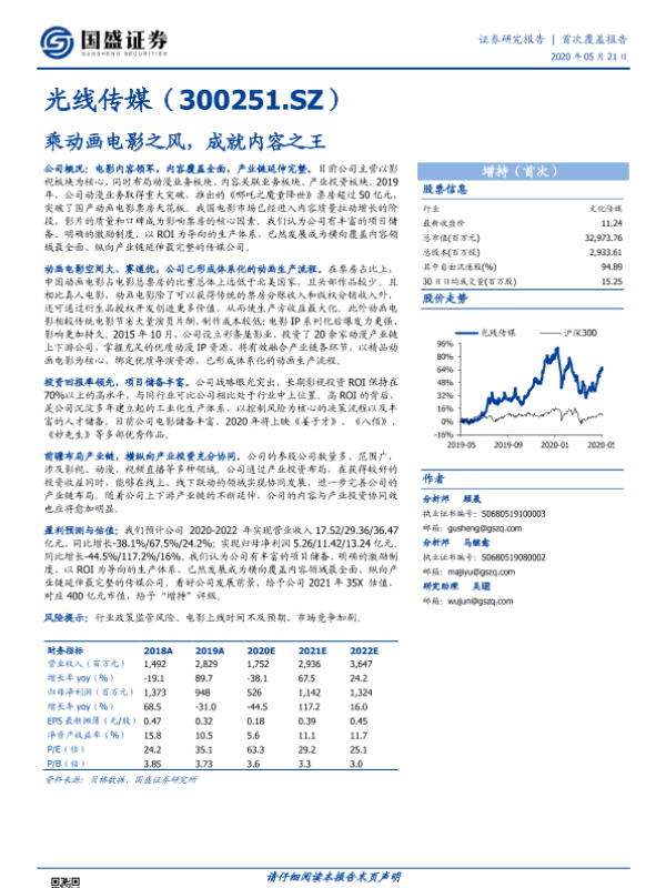 【国盛证券】【20200521】光线传媒(300251.SZ):乘动画电影之风,成就内容之王-30页
