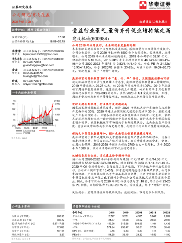 业绩增长 塔机租赁 机械设备 行业景气 装配式建筑