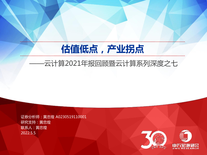 【申万宏源】【20220505】云计算行业2021年报回顾暨云计算系列深度之七:估值低点,产业拐点-33页