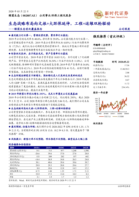【新时代证券】【20200522】绿茵生态首次覆盖报告:生态战略布局向文旅+大环保延伸,工程+运维双轮驱动-26页