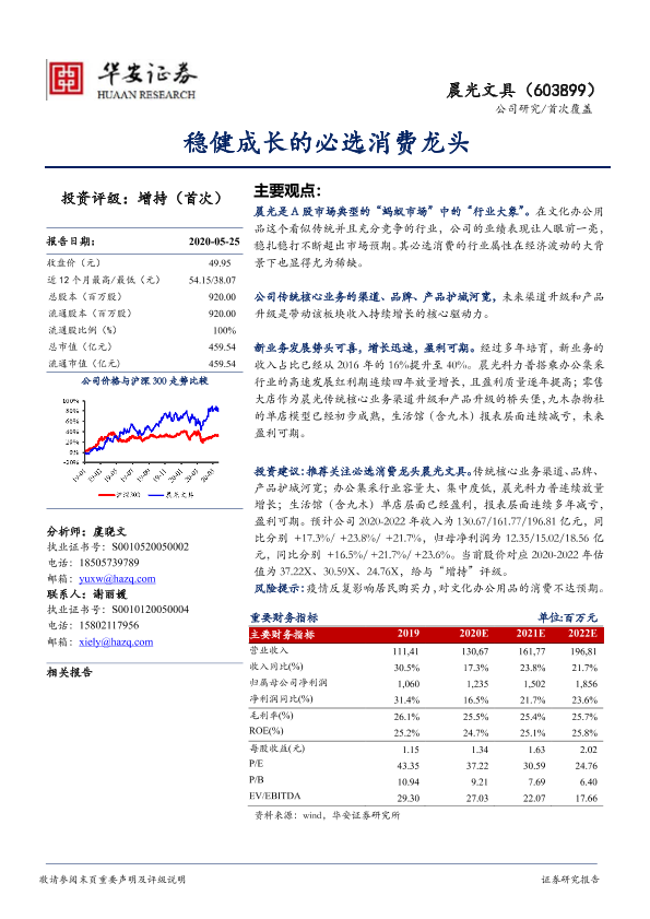 【华安证券】【20200525】20200525-华安证券-晨光文具-603899.SH-稳健成长的必选消费龙头-20页