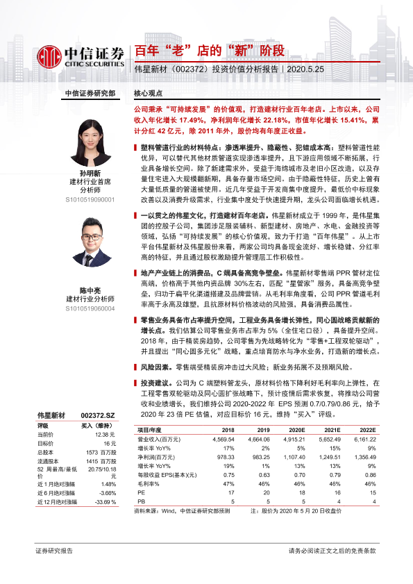 【中信证券】【20200525】20200525-中信证券-伟星新材-002372.SZ-投资价值分析报告:百年“老”店的“新”阶段-24页