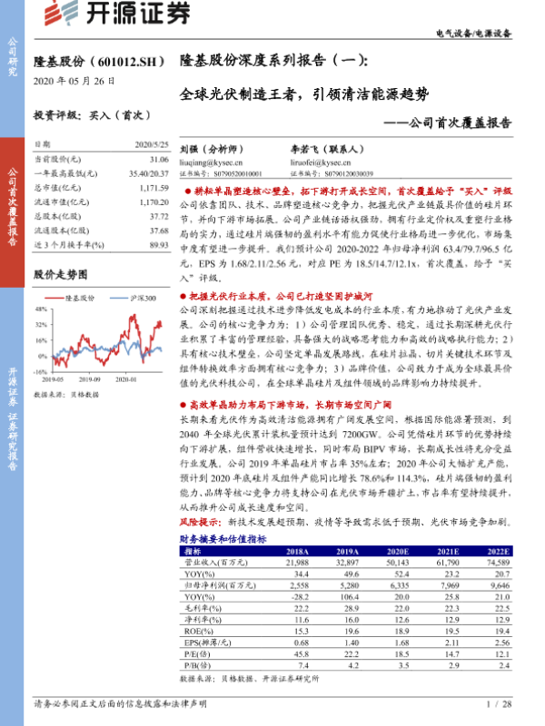 【开源证券】【20200526】隆基股份深度系列报告(一):全球光伏制造王者,引领清洁能源趋势-28页