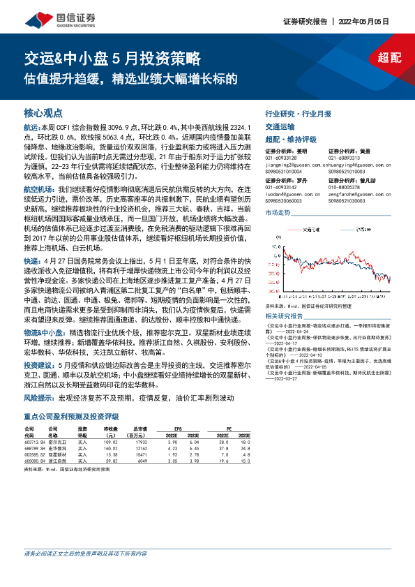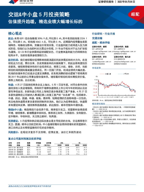 【国信证券】【20220505】交运&中小盘5月投资策略:估值提升趋缓,精选业绩大幅增长标的-29页