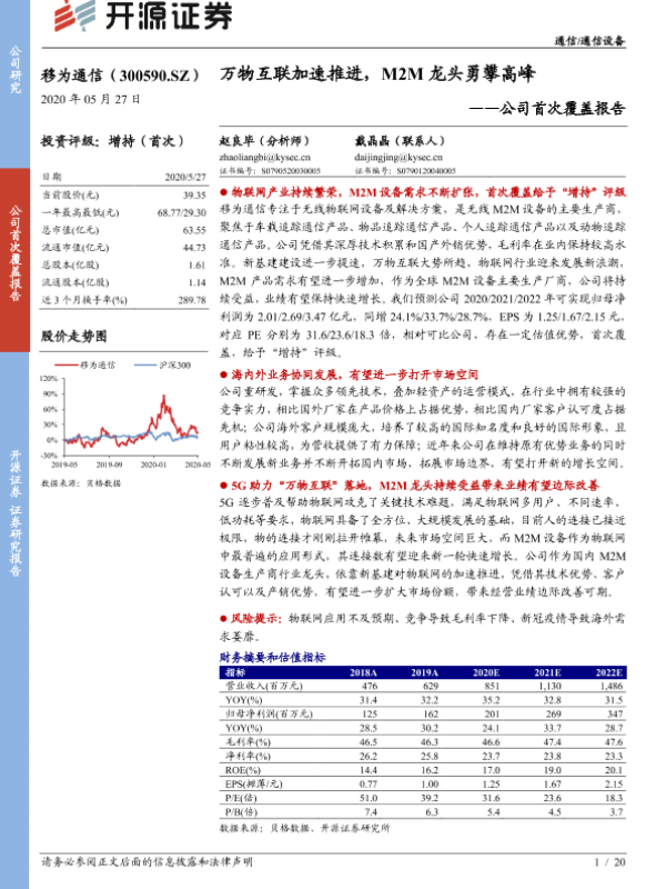 【开源证券】【20200527】20200527-开源证券-移为通信-300590.SZ-公司首次覆盖报告:万物互联加速推进,M2M龙头勇攀高峰-20页