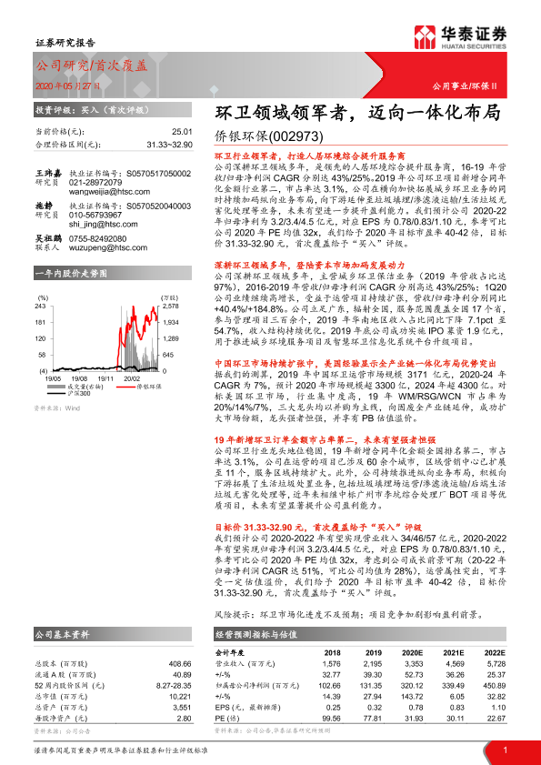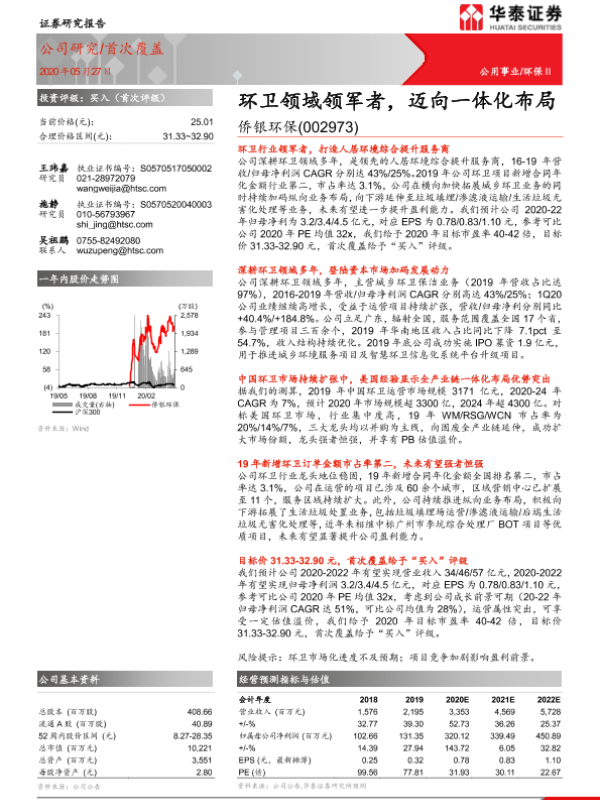 【华泰证券】【20200527】环卫领域领军者,迈向一体化布局-25页