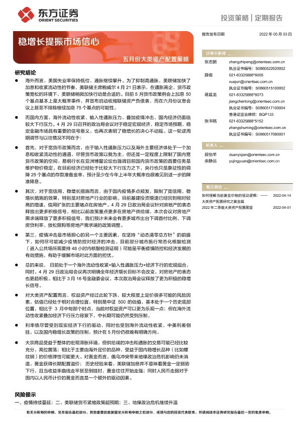 【东方证券】【20220503】五月份大类资产配置策略:稳增长提振市场信心-16页