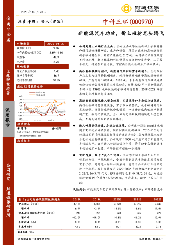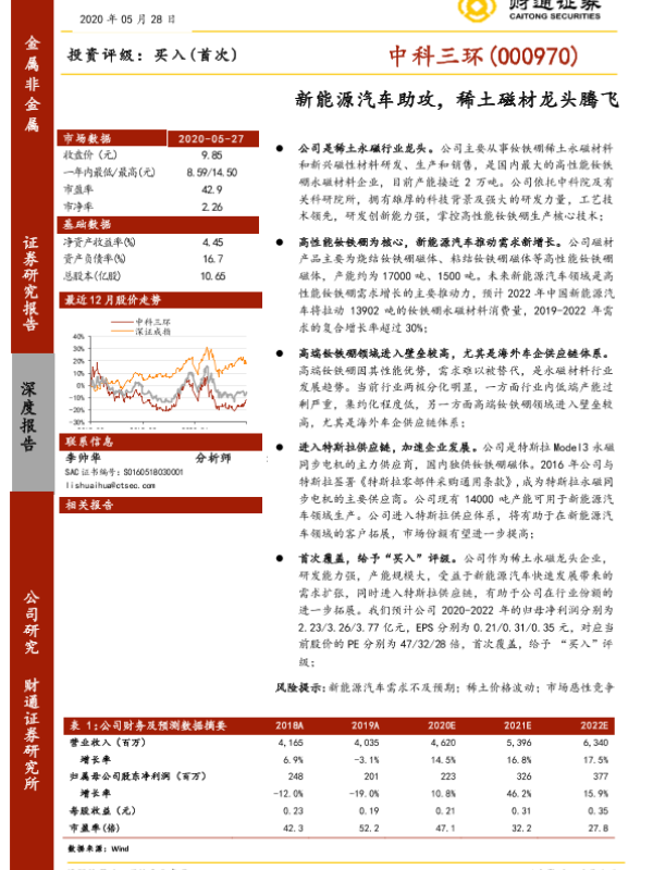 【财通证券】【20200528】20200528-财通证券-中科三环-000970.SZ-新能源汽车助攻,稀土磁材龙头腾飞-20页