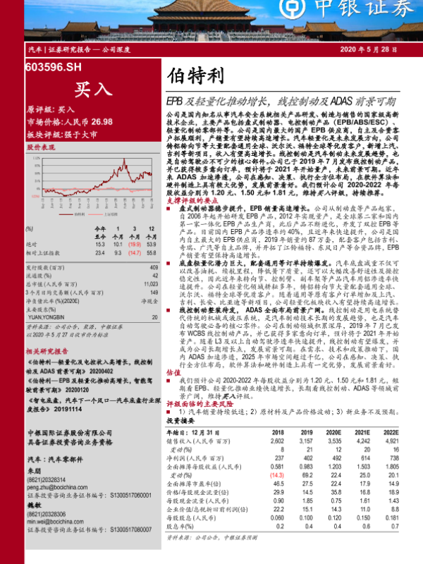 【中银证券】【20200528】伯特利-EPB及轻量化推动增长,线控制动及ADAS前景可期-41页