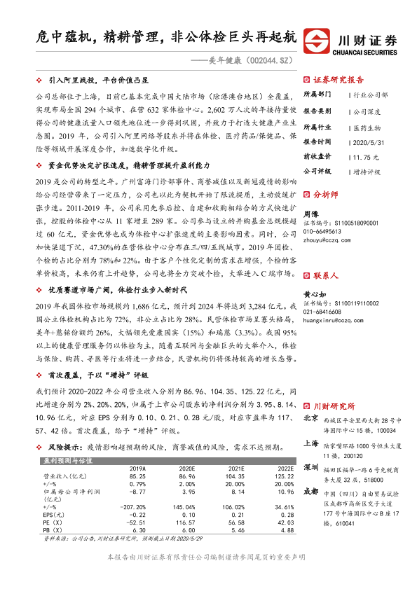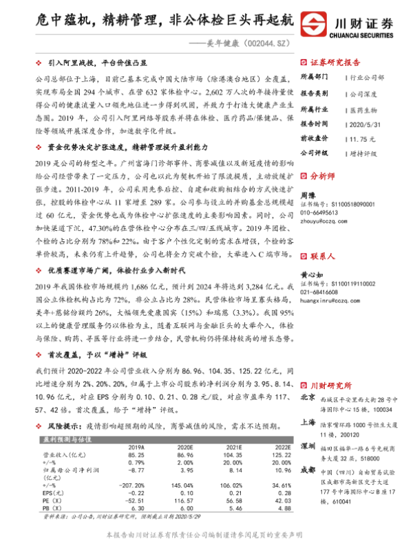 【川财证券】【20200531】危中蕴机,精耕管理,非公体检巨头再起航-26页