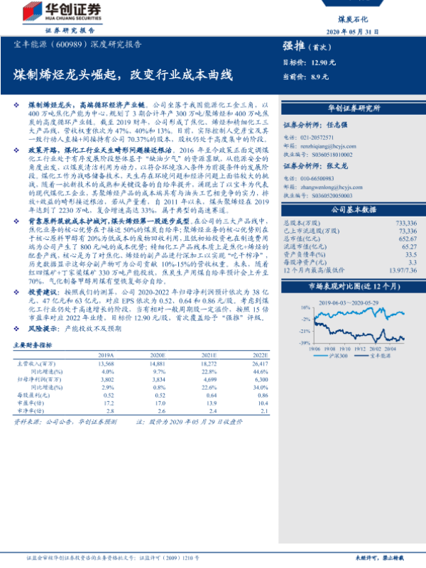 【华创证券】【20200531】20200531-华创证券-宝丰能源-600989.SH-深度研究报告:煤制烯烃龙头崛起,改变行业成本曲线-22页