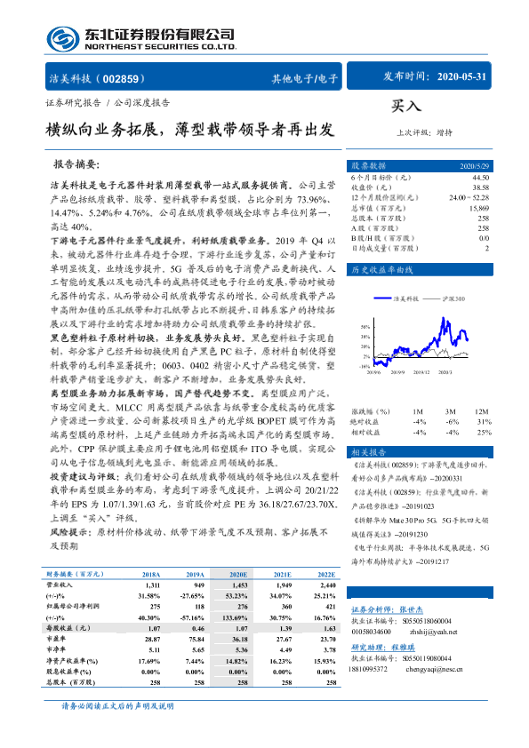 【东北证券】【20200531】洁美科技-横纵向业务拓展,薄型载带领导者再出发-32页