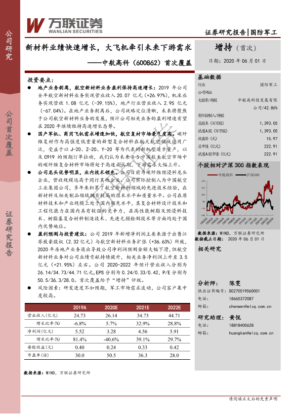 【万联证券】【20200601】20200601-万联证券-中航高科-600862.SH-首次覆盖:新材料业绩快速增长,大飞机牵引未来下游需求-21页