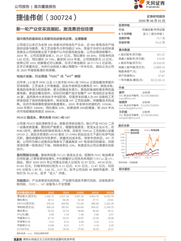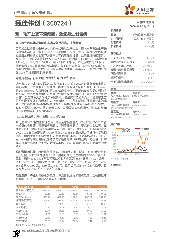 HIT电池 PERC电池 光伏产业 捷佳伟创 机械设备