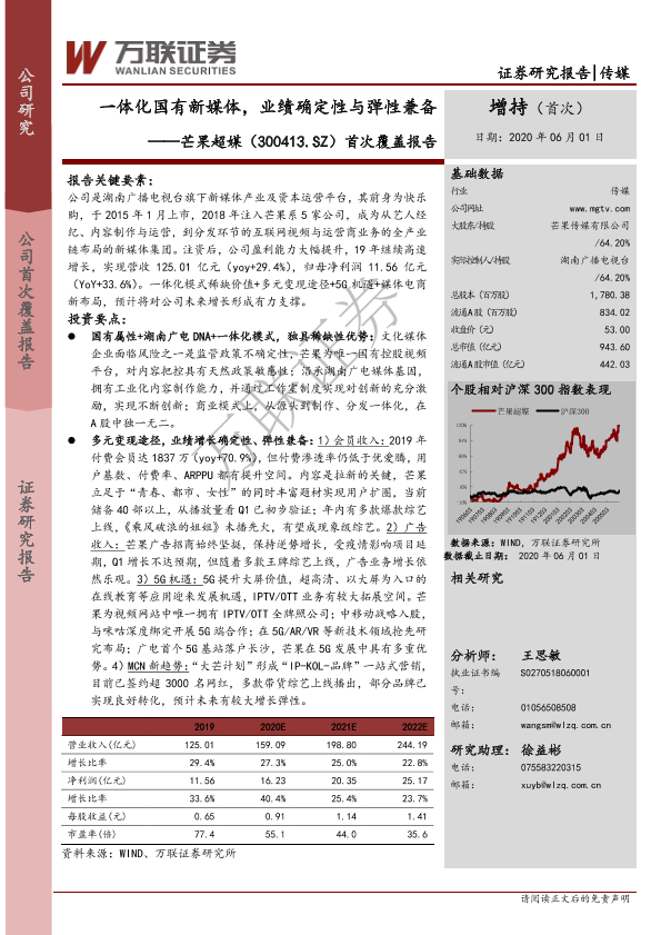 【万联证券】【20200601】20200601-万联证券-芒果超媒-300413.SZ-首次覆盖报告:一体化国有新媒体,业绩确定性与弹性兼备-33页