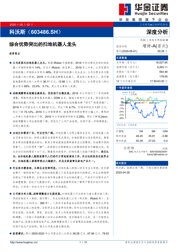 【华金证券】【20200602】综合优势突出的扫地机器人龙头-31页