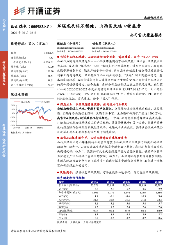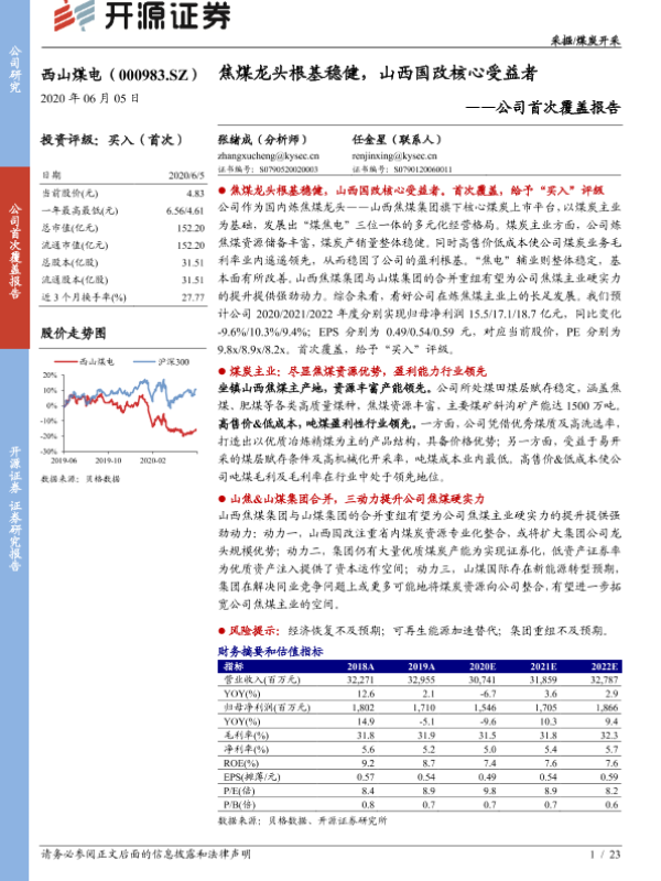 【开源证券】【20200605】20200605-开源证券-山西焦煤-000983.SZ-公司首次覆盖报告:焦煤龙头根基稳健,山西国改核心受益者-23页