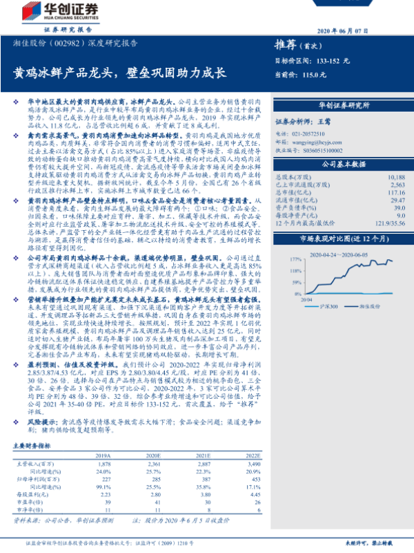 【华创证券】【20200607】20200607-华创证券-湘佳股份-002982.SZ-深度研究报告:黄鸡冰鲜产品龙头,壁垒巩固助力成长-33页